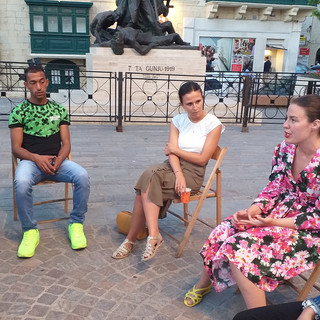 The event took place in Valletta, in Piazza St Georges. In open air and accessible to the public. Round tables for discussion were set up on themes around migration, sensitive topics usually unknown by the public, when it comes to the movement of people.